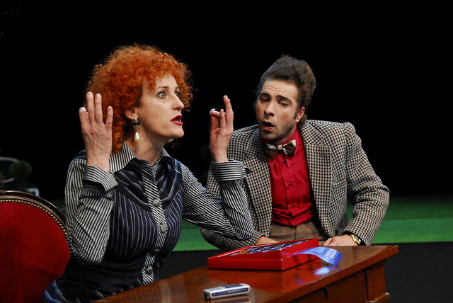 Na fotografiji: Saša Pavček (Ana Živana Tavčar Simčič/Ministrica) in Gorazd Žilavec (Stric Vasko)