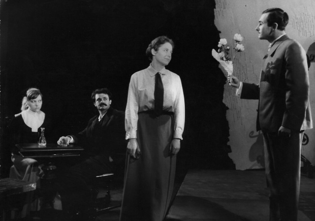 Na fotografiji: Minu Kjuder (Nina), Janez Bermež (Maks), Mija Mencej (Frančka) in Drago Kastelic (Franc Bernot) v predstavi Kralj na Betjanovi v režiji Jura Kislingerja.