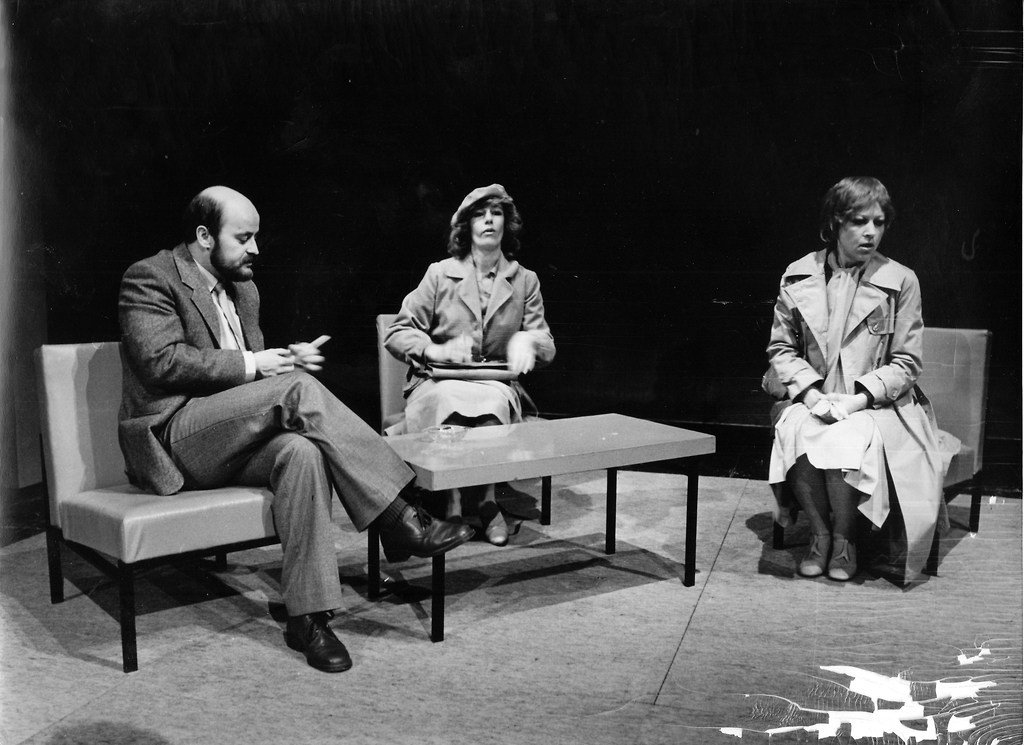 Na fotografiji: Minu Kjuder (Tereza), Ana Veble (Katarina) in Vlado Novak (Gabrijel) v predstavi Kongres v režiji Branka Gombača.