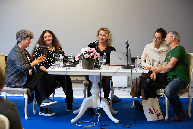 Na fotografiji: Mojca Redjko, FBS, Sandra Jenko, Slogi, Dominika Špalkov, Gledališče DRAK, Tjaša Šket, prevajalka in Jack Timmermans, De Stilte