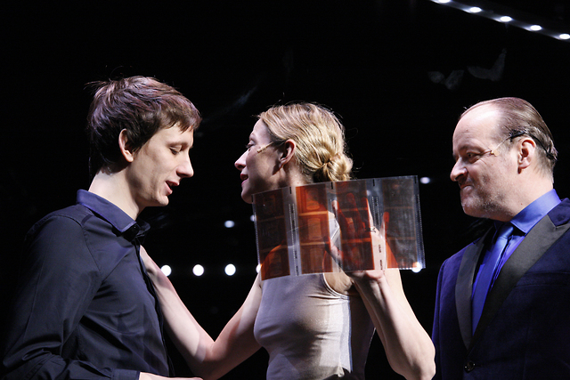 Jurij Drevenšek (Jörgen Tesman), Matjaž Tribušon (Ejlert Lövborg) in Nataša Matjašec Rošker (Heda Tesman)