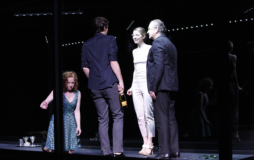 Mateja Pucko (Gospa Elvsted), Jurij Drevenšek (Jörgen Tesman), Nataša Matjašec Rošker (Hedda Tesman) in Ivo Ban (Asesor Brack)