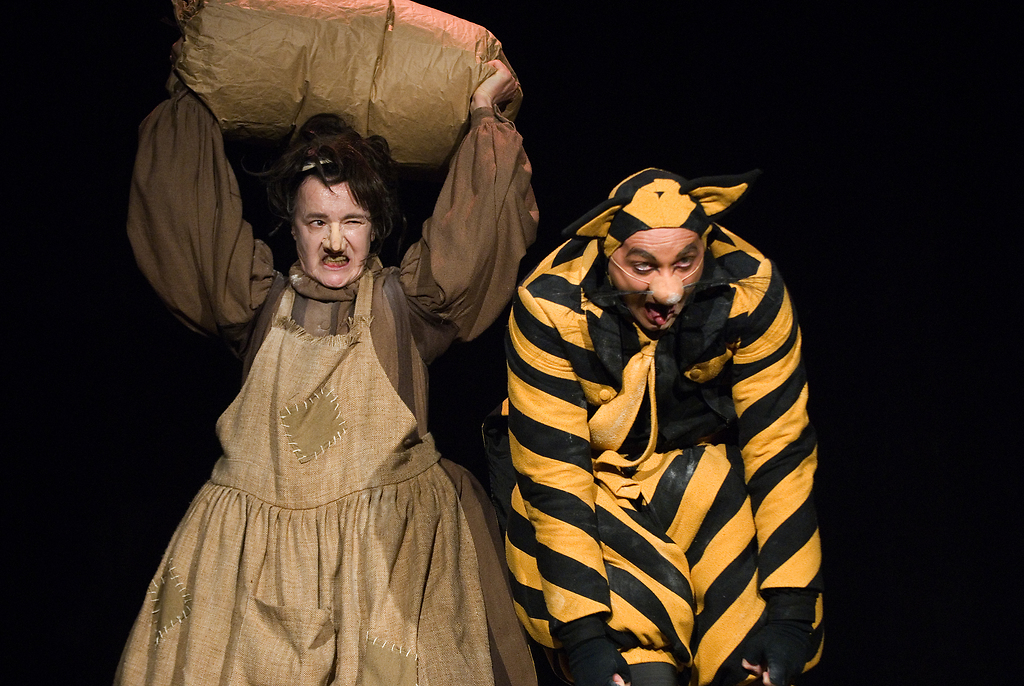 Na fotografiji: Marinka Štern (Mlinarica Jedrt) in Dario Varga (Maček) v predstavi Pekarna Mišmaš v režiji Roberta Waltla.