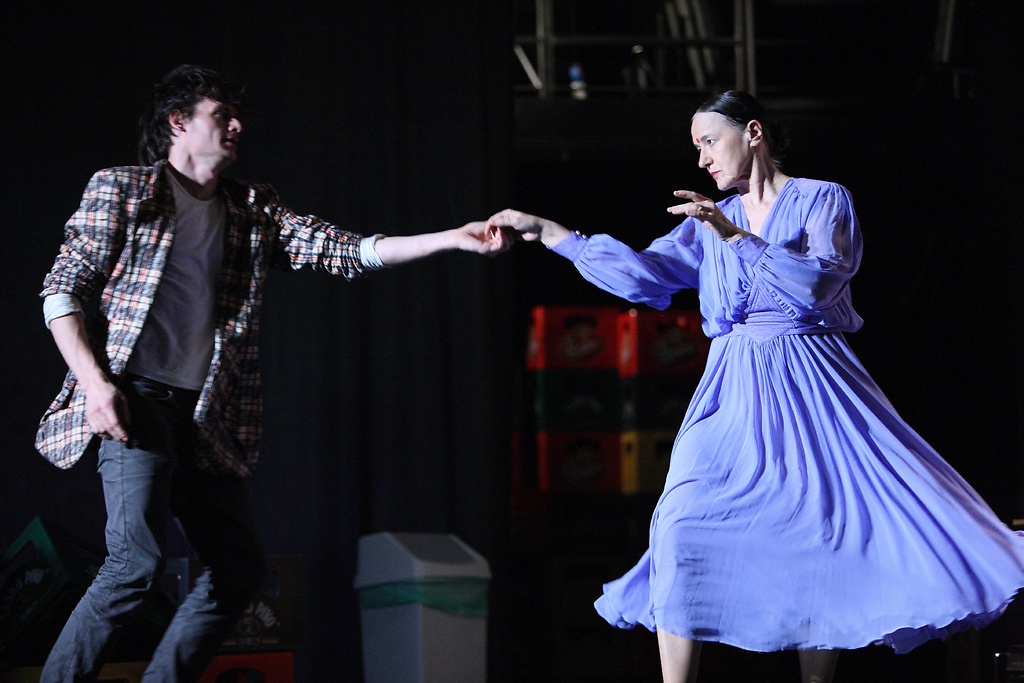 Na fotografiji: Primož Bezjak (Tony Allen) in Marinka Štern (Gospa Allen) v predstavi Nickel Stuff v režiji Ivice Buljana.