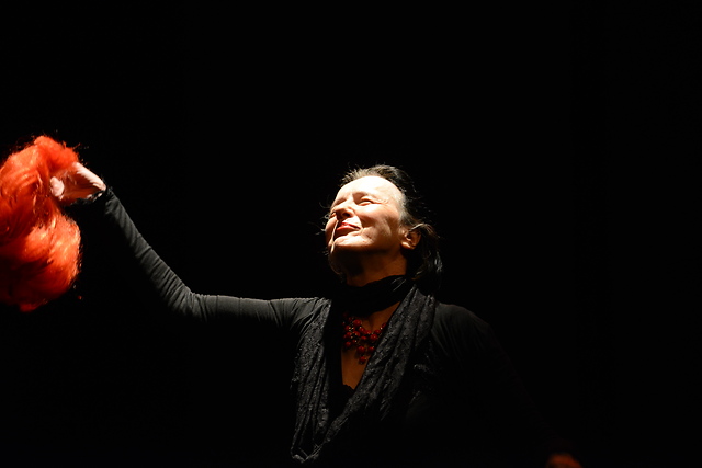 Na fotografiji: Marinka Štern (Eda Nikita Elsner) v predstavi Najstarejša obrt v režiji Petra Srpčiča.