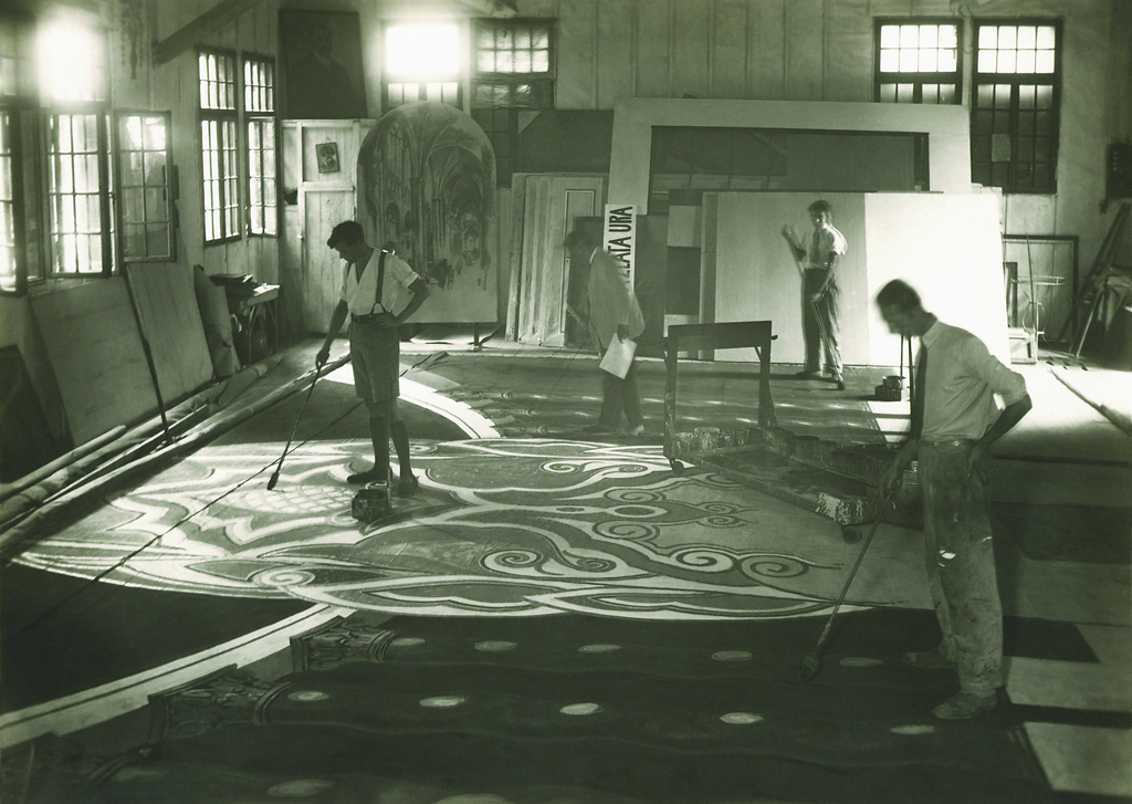 Pogled v kulisarno, Narodno gledališče v Ljubljani, fotografija (foto: M. Pfeifer), hrani Ikonoteka SLOGI – Gledališki muzej. Work in the theatre workshop, SNT Drama Ljubljana, photograph (credit: M. Pfeifer), source: Slovenian Theatre Institute.