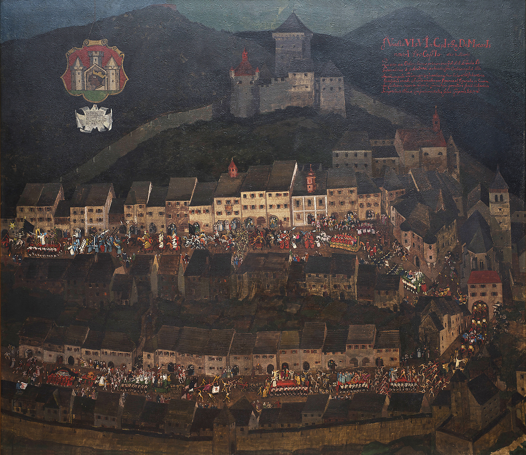 Boris Kobe: olje, hrani Ikonoteka SLOGI – Gledališki muzej. Boris Kobe: oil on canvas, source: Slovenian Theatre Institute. Škofjeloški pasijon / Škofja loka Passion Play, naslikano po naročilu Slovenskega gledališkega muzeja / painted by the commission of the Slovenian Theatre Museum (now SLOGI), 1967