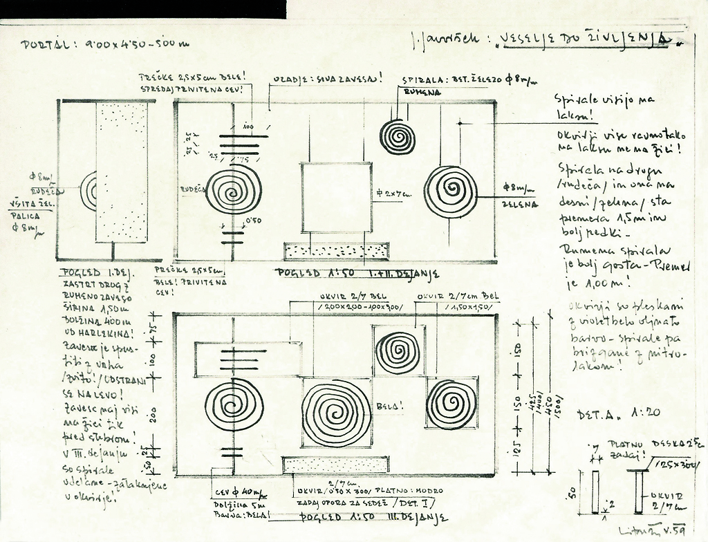 Mirko Lipužič: scenografija predstave, fotografija, hrani Ikonoteka SLOGI – Gledališki muzej. Mirko Lipužič: stage design, photograph, source: Slovenian Theatre Institute. J. Javoršek: Veselje do življenja / Joy of Life, Oder 57 / Stage 57, 1958/59.