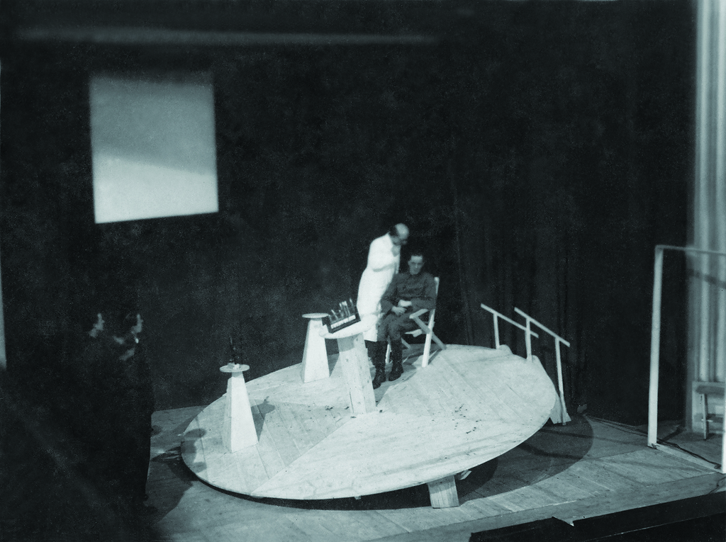 Zvonimir Sintič: scenografija predstave, fotografija, hrani Ikonoteka SLOGI – Gledališki muzej. Zvonimir Sintič: stage design, photograph, source: Slovenian Theatre Institute. G. Büchner: Vojček / Woyzeck, Gledališče mladih / Young People’s Theatre, 1940.