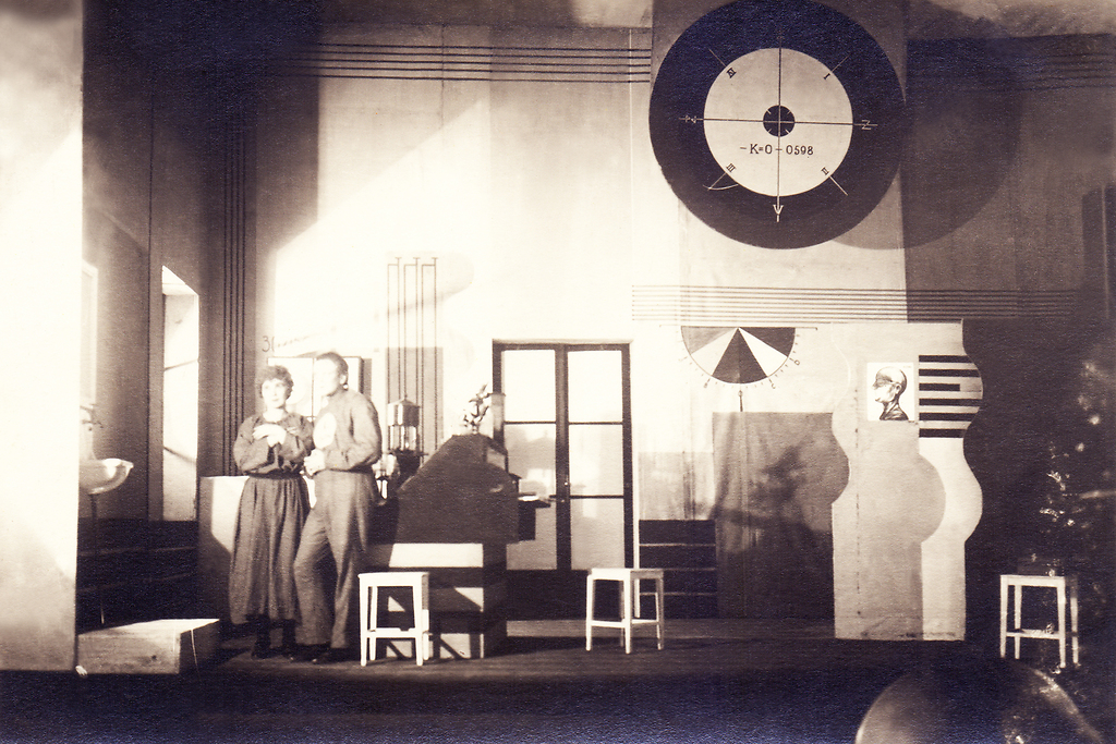 Vaclav Skrušny: scenografija predstave, fotografija, hrani Ikonoteka SLOGI – Gledališki muzej. Vaclav Skrušny: stage design, photograph, source: Slovenian Theatre Institute. K. Čapek: R. U. R., Drama Narodnega gledališča / SNT Drama Ljubljana, 1922/23.