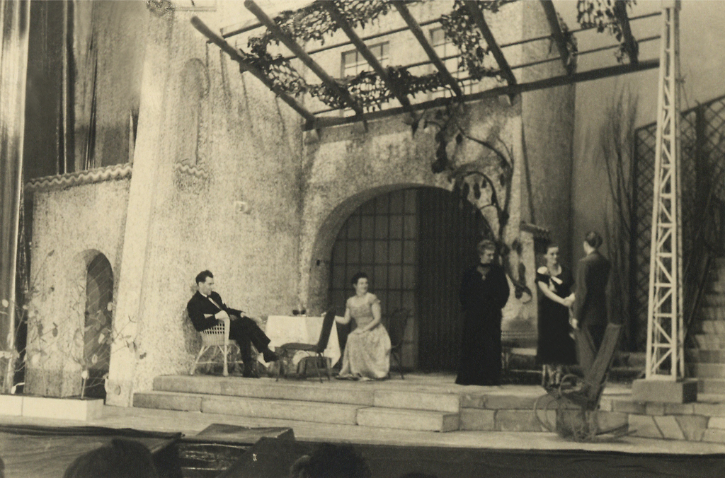 Bojan Stupica: scenografija predstave, fotografija, hrani Ikonoteka SLOGI – Gledališki muzej. Bojan Stupica: stage design for the performance, source: Slovenian Theatre Institute. A. Miller: Vsi moji sinovi / All my sons, Drama Slovenskega narodnega gledališča v Ljubljani / SNT Drama Ljubljana, 1949/50.