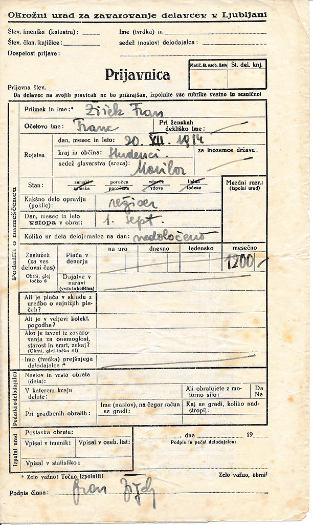 Prijavnica Frana Žižka na mesto režiserja v Mestnem gledališču Ptuj, 1938, slika 1