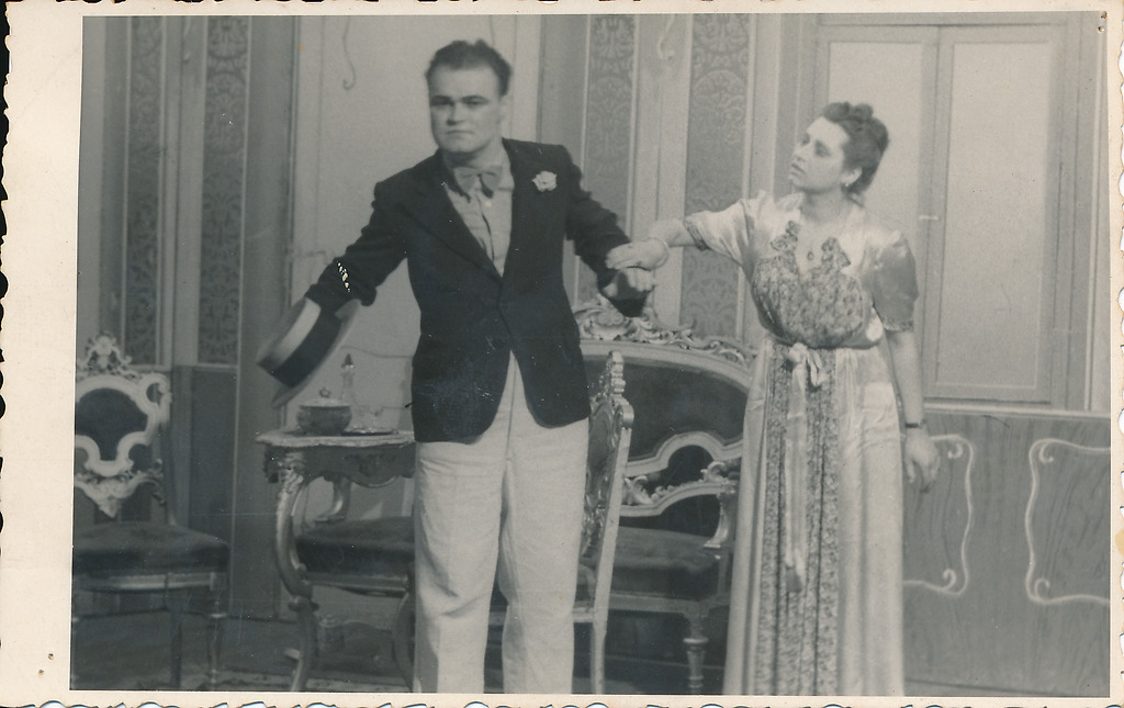 Franjo Gunžer in Milica Domajnko v predstavi Vasilija Vasiljeviča Škvarkina Tuje dete, režija Hinko Košak. Narodno gledališče v Ptuju, 1945/46, slika 4