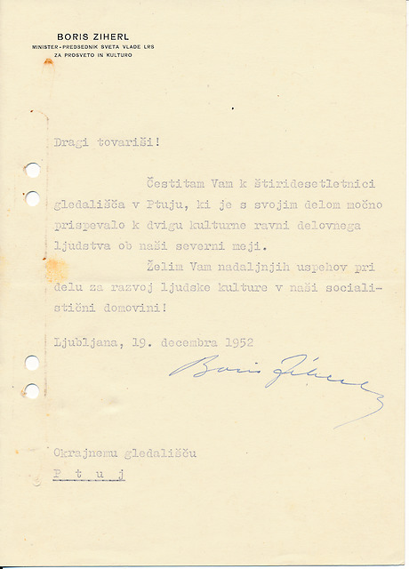 Čestitka Borisa Ziherla ob 40-letnici ptujskega gledališča, slika 6