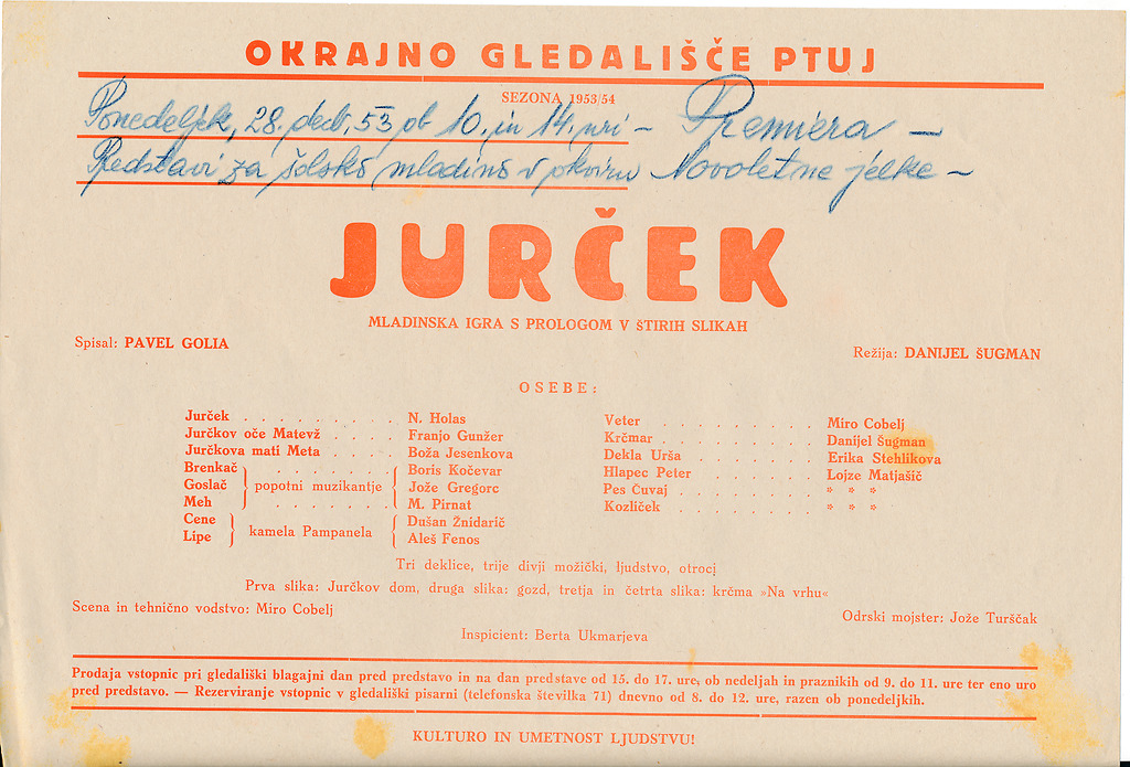 Plakat predstave Jurček v režiji Danijela Šugmana. Okrajno gledališče Ptuj, 1953/54, slika 10