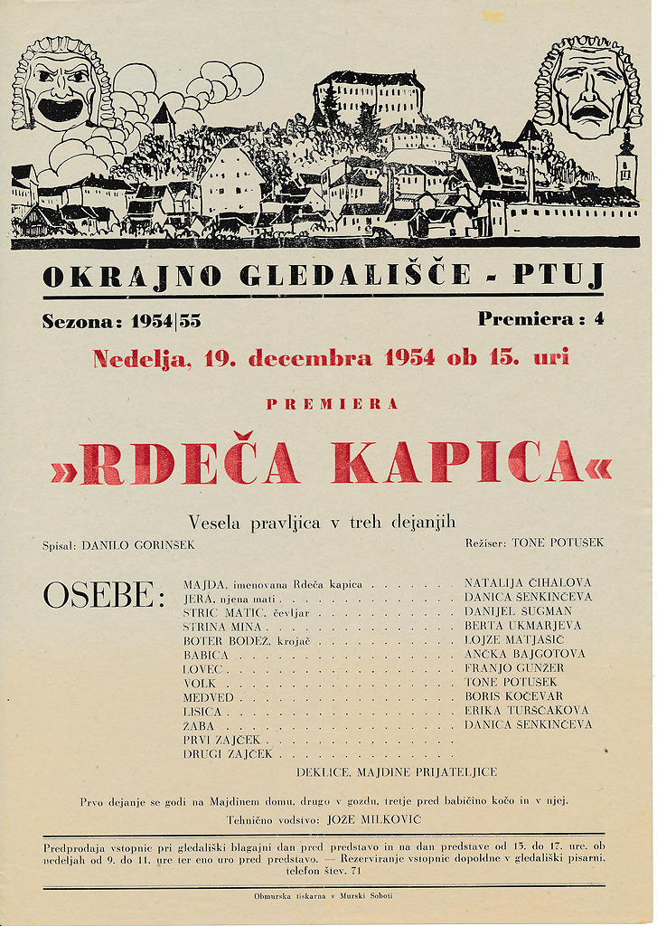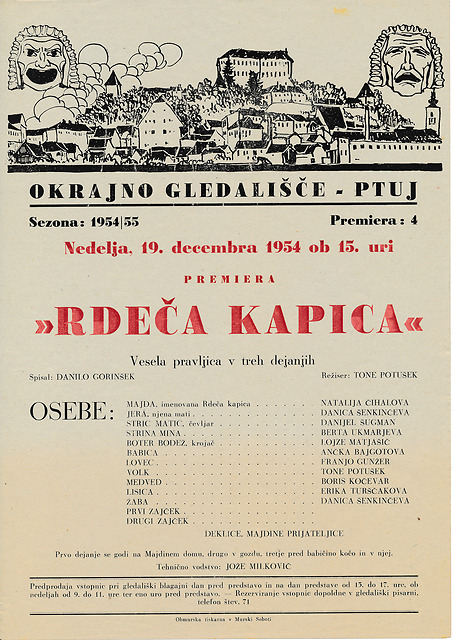 Plakat otroške predstave Danilo Gorinšek, Rdeča kapica, v režiji Toneta Potuška. Okrajno gledališče Ptuj, 1954/55, slika 11
