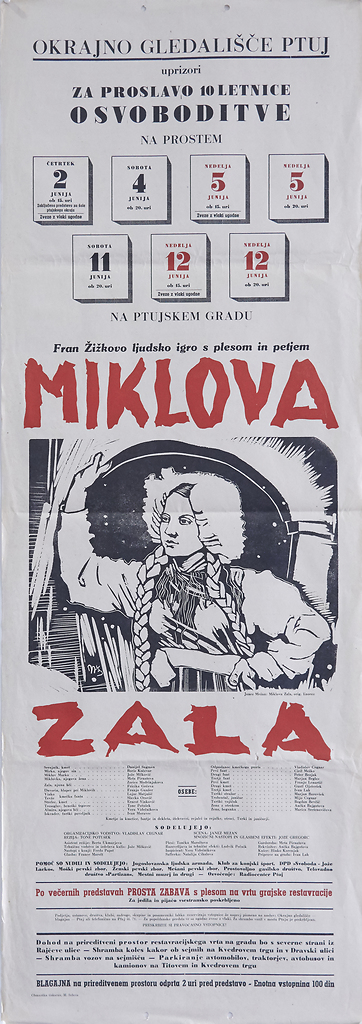 Plakat predstave Miklova Zala Okrajnega gledališča Ptuj v sezoni 1950/51, slika 14