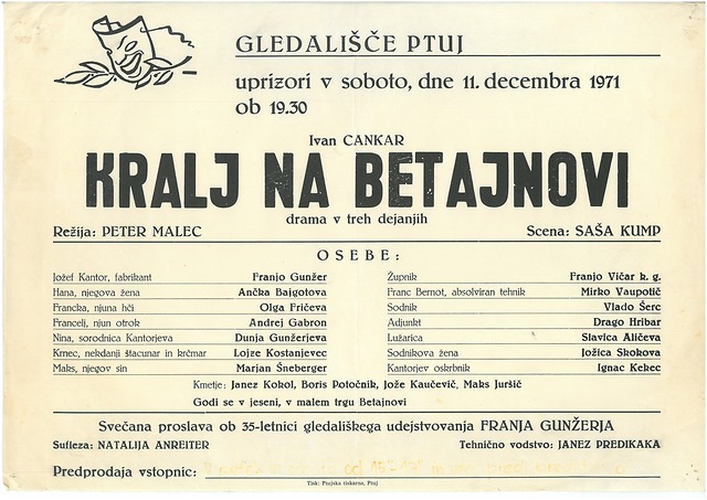 Plakat prestave Kralj na Betajnovi, režija Peter Malec. Gledališče Ptuj, 1971/72, slika 2