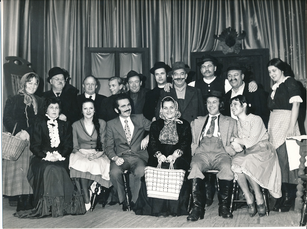 Gledališka skupina ob predstavi Trije vaški svetniki v režiji Marjana Kovača v sezoni 1973/74, slika 8