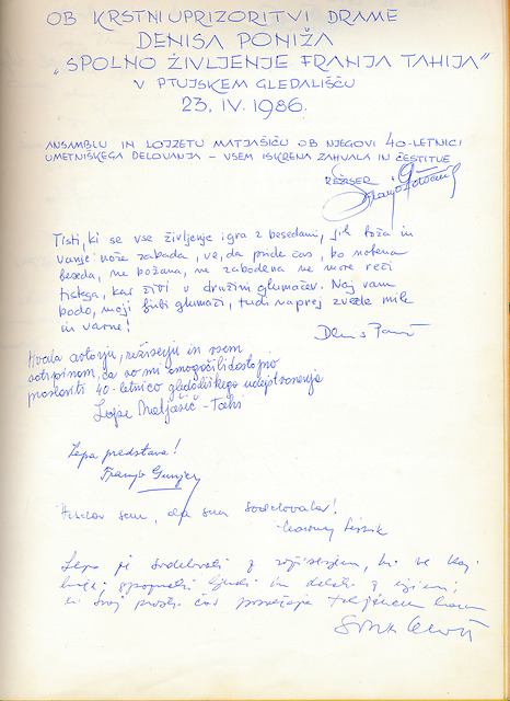 Vpis v knjigo vtisov ob predstavi Spolno življenje Franja Tahija, slika 20