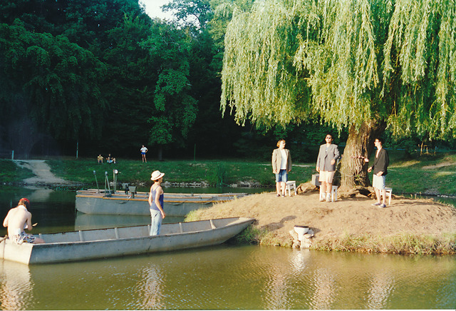 Na fotografiji v čolnu režiser Samo M. Strelec, na otoku Urška Vučak, Gregor Geč, Nenad Tokalić.