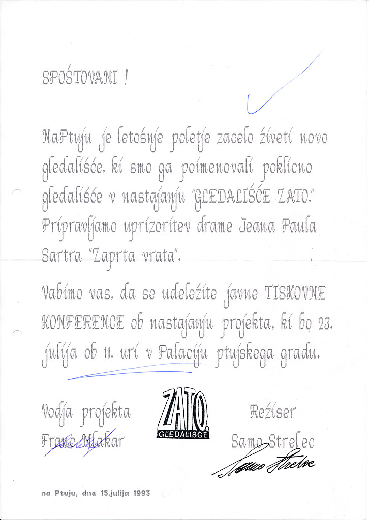 , Gledališče Zato., 15.07.1993 (Datum nastanka)