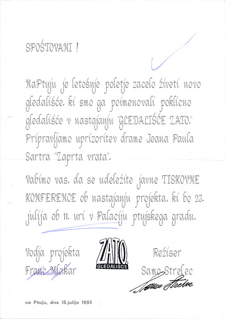 Vabilo na tiskovno konferenco gledališča v nastajanju Gledališča Zato., slika 5