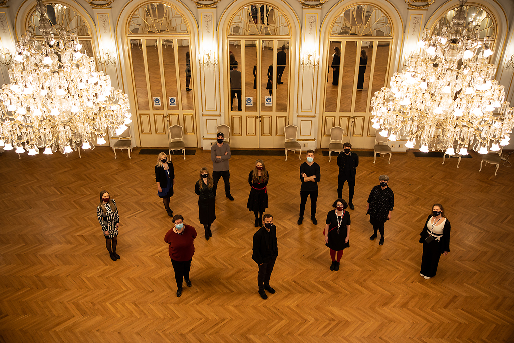 Na fotografiji: Mojca Hadela, Marja Guček, Aleš Novak (umetniški direktor FBS), Martina Magdič, Mojca Redjko, Adrijana Kos, Daša Šprinčnik, Mojca Kolar, Matic Gselman, Ana Gabrovec, Matic Kašnik in Rok Bozovičar