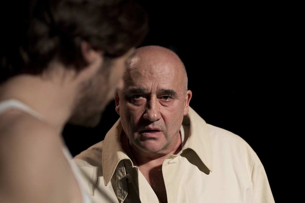 Na fotografiji: Branko Jordan (Mojster, Bulgakov, Ješua) in Peter Boštjančič (Poncij Pilat, Berlioz) v predstavi Mojster in Margareta v režiji Janusza Kice