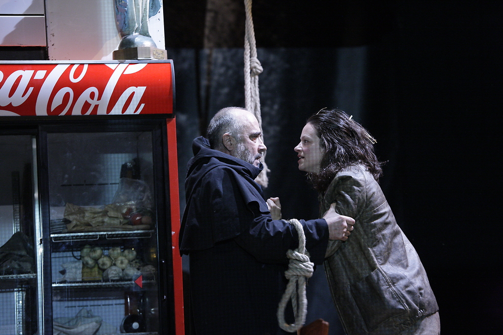 Na fotografiji: Peter Boštjančič (Prior) in Nika Rozman (Marija) v predstavi Ljudožerci v režiji Ivice Buljana