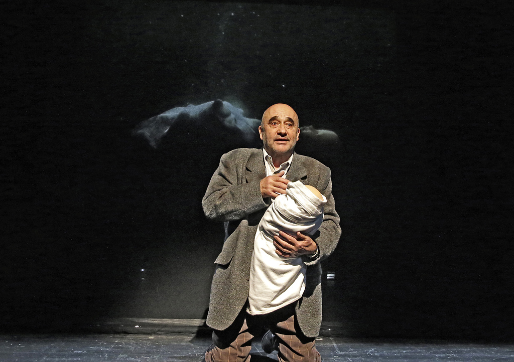 Na fotografiji Peter Boštjančič v predstavi Mostovi in bogovi v režiji Aleksandra Popovskega