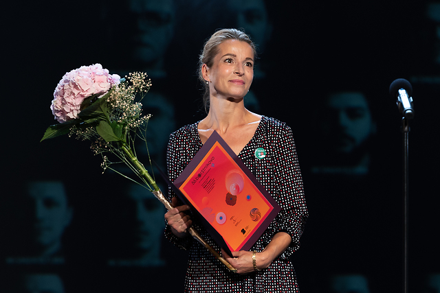 Na fotografiji: Maša Derganc ob prejemu Borštnikove nagrade za igro v uprizoritvi Alice v postelji v produkciji Slovenskega narodnega gledališča Drama Ljubljana