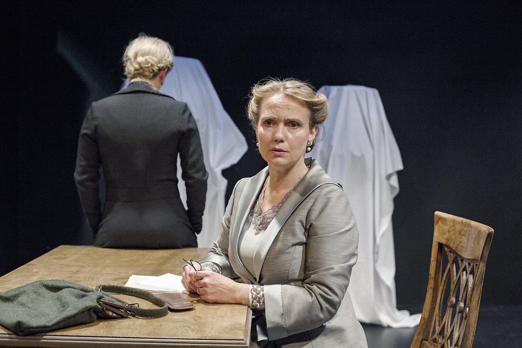 Na fotografiji: Jana Zupančič (Ana) in Jette Ostan Vejrup (Karin) v predstavi Pogovori na štiri oči v režiji Nikite Milivojević