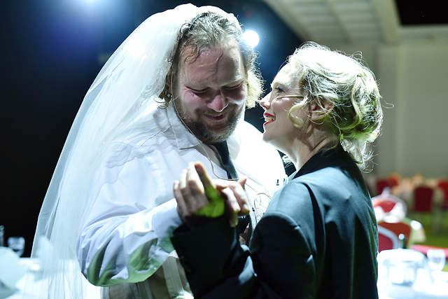 Na fotografiji: Primož Pirnat (Tezej, atenski knez) in Jette Ostan Vejrup (Hipolita, amazonska kraljica) v predstavi Sen kresne noči v režiji Jerneja Lorencija