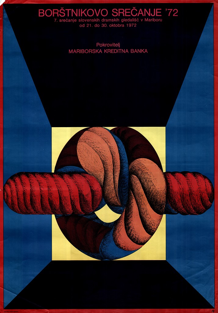 Borštnikovo srečanje 1972 je potekalo od 21. do 30. oktobra v Mariboru. Do leta 1972 so bili plakati za Teden slovenskih gledališč tipografski, temeljili so na izročilu knjižnega tiska, kar je Kržišnikov plakat leta 1972 prekinil – plakat ni več navajal tekmovalnega programa, pač pa je bila v ospredje postavljena vizualija. Kržišnik je oblikoval plakate še v letih 1984, 1985 in 1986, ko je na plakat ponovno postavil celotni tekmovalni program (napoved vseh predstav), torej prav to »tradicijo«, ki jo je njegov plakat leta 1972 odločno prekinil. Tehnika: sitotisk