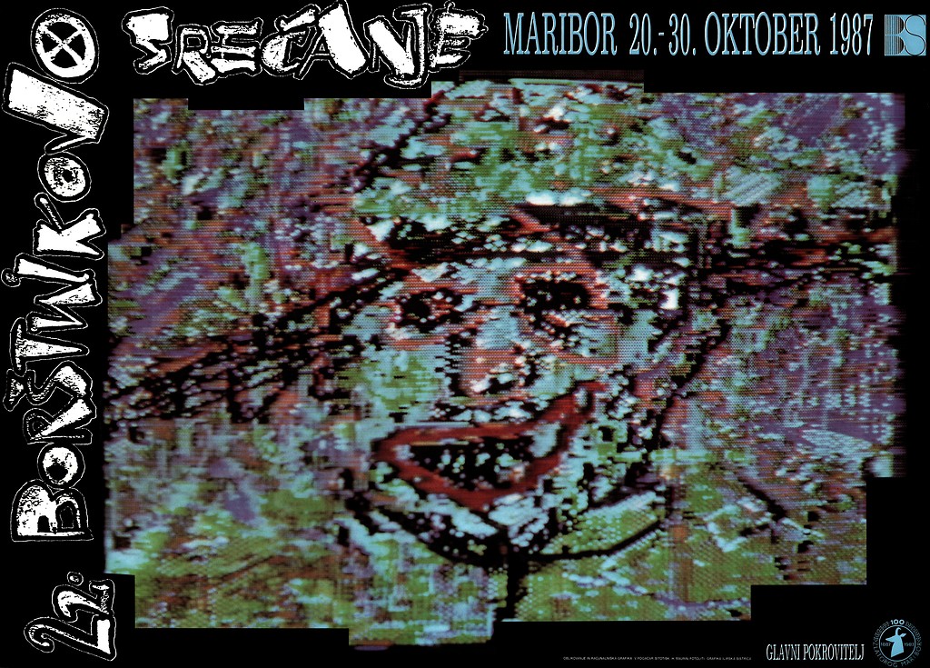 22. Borštnikovo srečanje je potekalo od 20. do 30. oktobra 1987 v Mariboru. Tehnika: sitotisk: H. Maurin. Fotoliti: Grafika Ilirska Bistrica