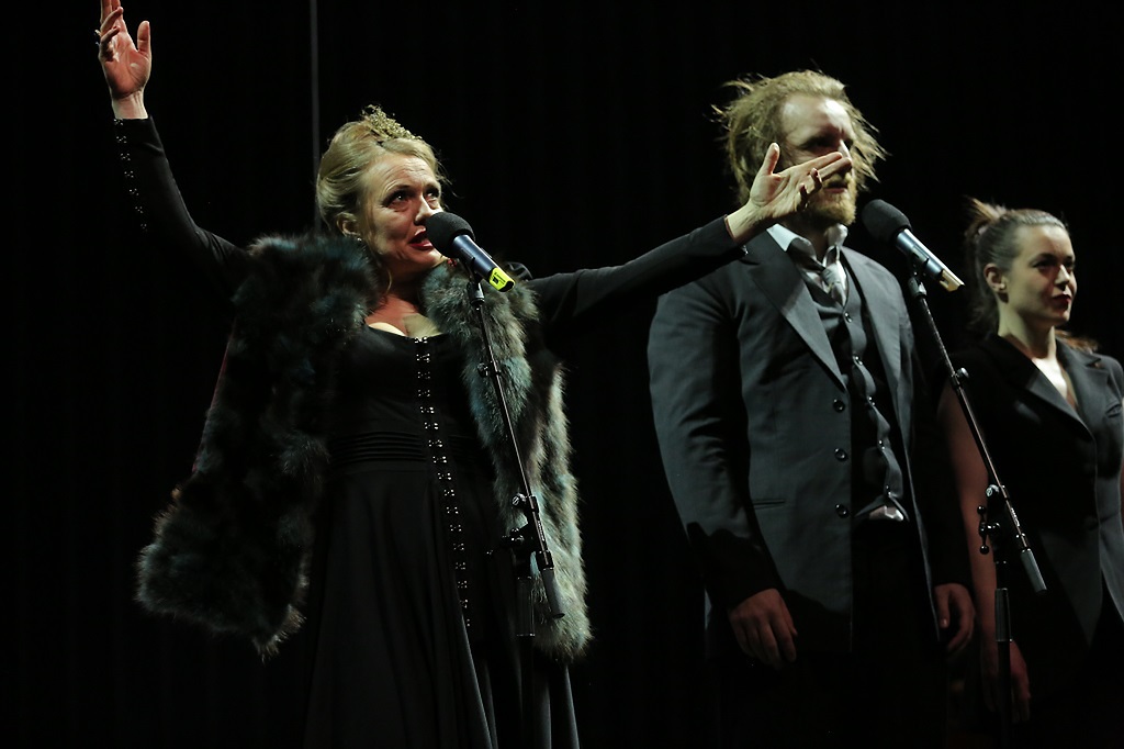 Na fotografiji: Jette Ostan Vejrup (Hera), Matej Puc (Zevs), Nina Ivanišin (Tetida)