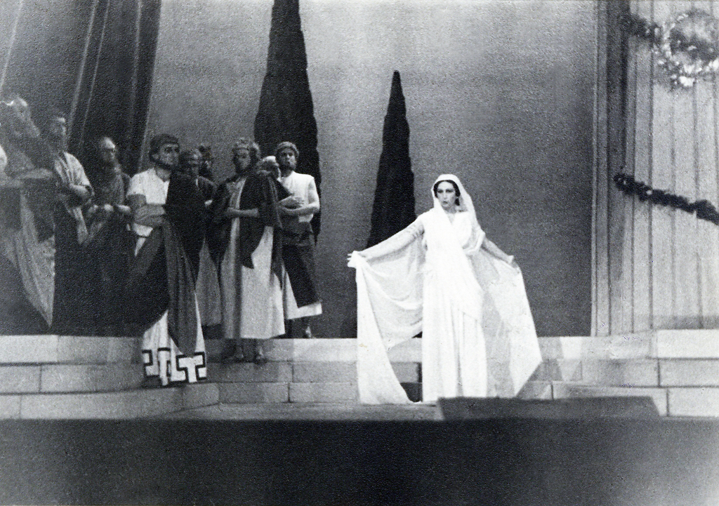 Sofoklej: Antigona. Narodno gledališče v Ljubljani, 21. 10.1939, režiser: Fran Lipah. Na fotografiji: Mila Šarič (Antigona) in Milan Skrbinšek (Kreon), 1