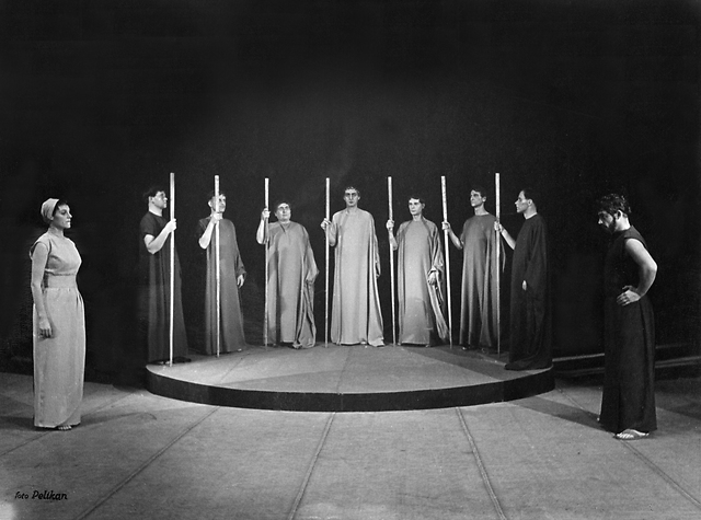 Sofoklej: Antigona. SLG Celje, 19. 9. 1956, režiser: Herbert Grün. Na fotografiji v ospredju Klio Maver (Antigona) in Janez Škof (Kreon), 2
