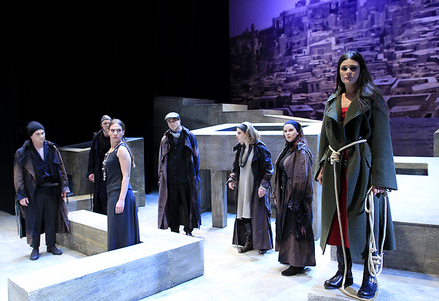 Sofoklej: Antigona. SLG Celje, 18. 3. 2011, režiserka: Anđelka Nikolić. Na fotografiji: Damjan M. Trbovc, Branko Završan, Tanja Potočnik (Ismena), Rastko Krošl, Nina Rakovec, Suzana Grau, Pia Zemljič (Antigona), 1