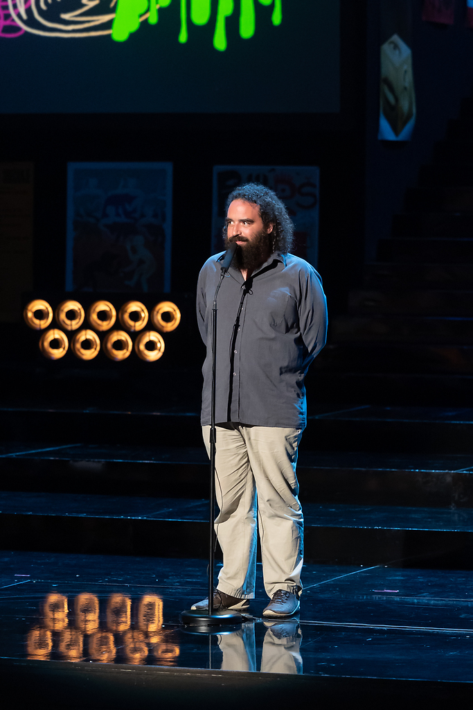 Na fotografiji: Jure Novak (v imenu Branka Rožmana) ob prejemu Borštnikove nagrade za glasbo v uprizoritvi Škofjeloški pasijon v koprodukciji Prešernovega gledališča Kranj in Mestnega gledališča Ptuj