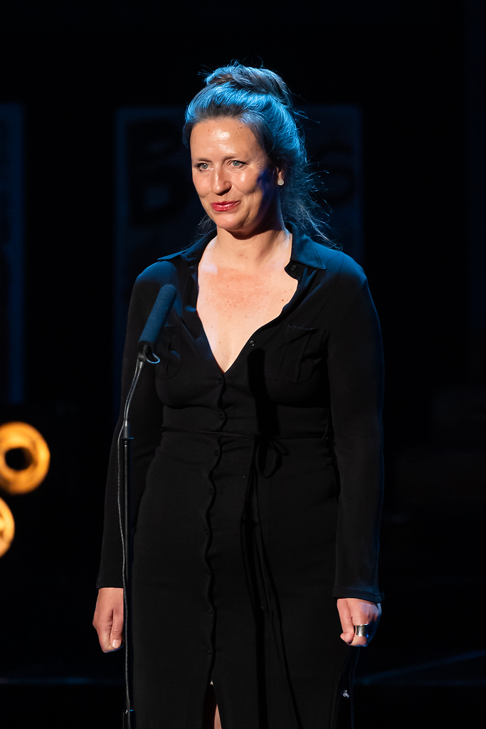 Na fotografiji: Nina Valič ob prejemu Borštnikove nagrade za igro za vlogi Savde in Nazire v uprizoritvi Požigi v produkciji Slovenskega narodnega gledališča Drama Ljubljana