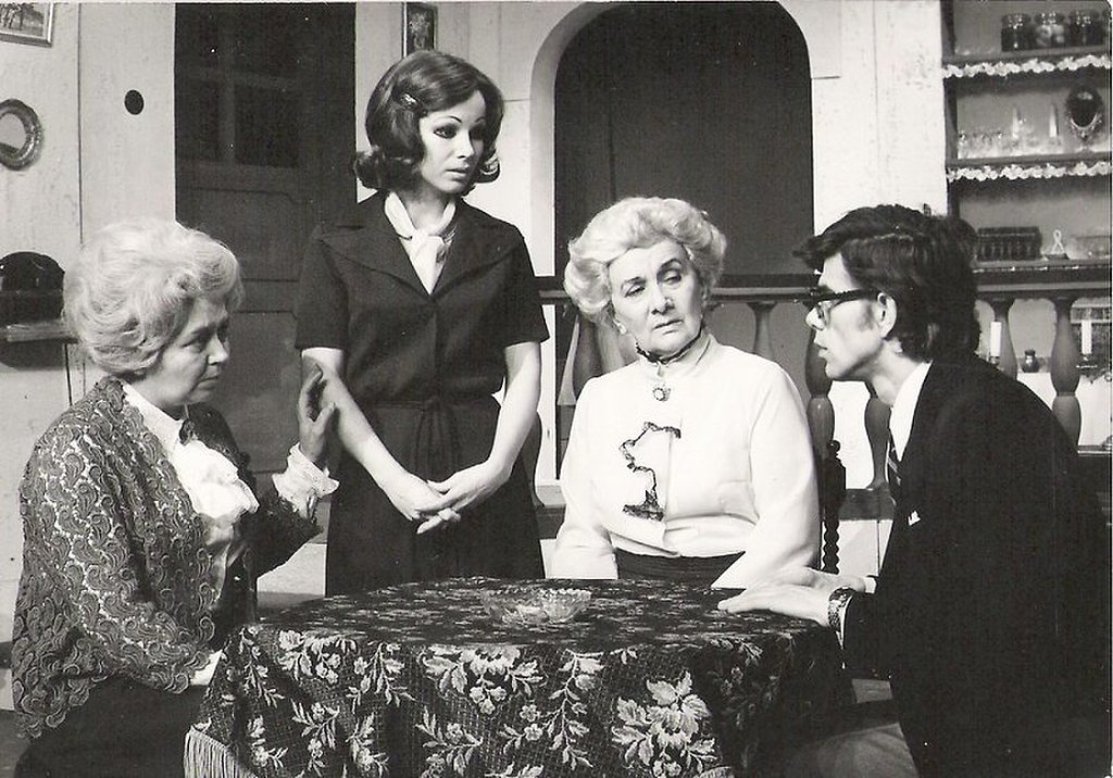 Na fotografiji: Breda Urbič, Teja Glažar, Sava Sever in Ivo Barišič v predstavi Arzenik in stare čipke v režiji Dušana Mlakarja.