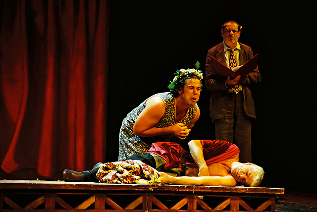 Na fotografiji: Danijel Malalan, Ivo Barišič in Janez Starina v predstavi Sen kresne noči v režiji Janusza Kice.