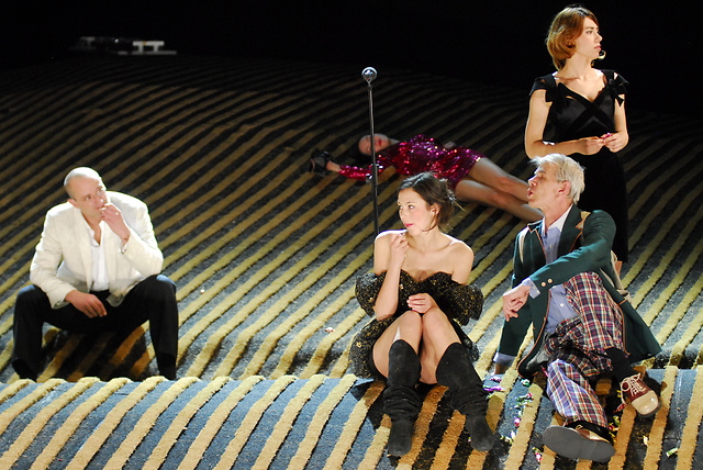 Na fotografiji: Blaž Valič, Maja Poljanec Nemec, Ajda Toman, Ivo Barišič in Alida Bevk v predstavi Letoviščarji v režiji Paola Migellija.