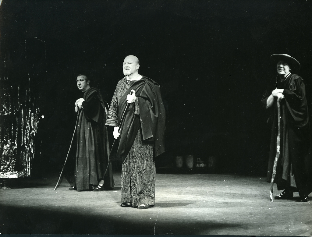 Sofoklej: Antigona. Slovenské národné divadlo, Bratislava, 19. 12. 1971, režiser: Peter Mikulík; na sliki: Jozef Šándor (Zbor), Viliam Záborský (Vodja zbora), Alojz Kramár (Zbor), 2
