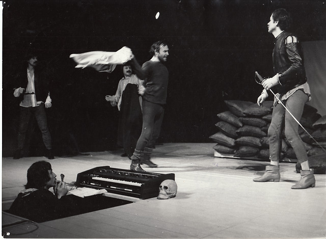 William Shakespeare: Romeo in Julija. Divadlo pre deti a mládež, Trnava, 19. 2. 1982, režiser: Juraj Nvota; na sliki: Štefan Kožka (Romeo I), Jaroslav Filip (Fra Lorenzo), Ján Topľanský (Benvolio), Ľudovít Moravčík (Mercutio), Vladimír Jedľovský (Tybalt), 3