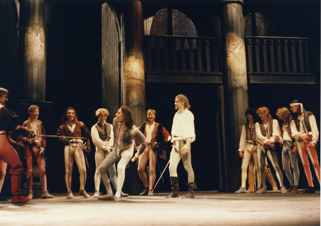 William Shakespeare: Romeo in Julija. Slovenské národné divadlo, Bratislava, 20. 6. 1992, režiser: Roman Polák; na sliki: Peter Mankovecký (Romeo), Marián Geišberg (Mercutio), 3