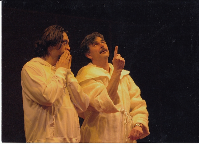William Shakespeare: Romeo in Julija. Divadlo Astorka Korzo ʼ90, Bratislava, 12. 4. 2006, režiser: Jan Antonín Pitínský; na sliki: Lukáš Latinák (Romeo), Boris Farkaš (Fra Lorenzo), 2
