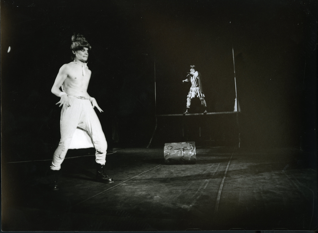 Alfred Jarry: Kralj Ubu. Bábkové divadlo, Žilina, 2. 9. 1995, režiser: Anton Šulík Jr; na sliki: Róbert Roth (Ata Ubu), Juraj Mokrý (Boleslas), 3
